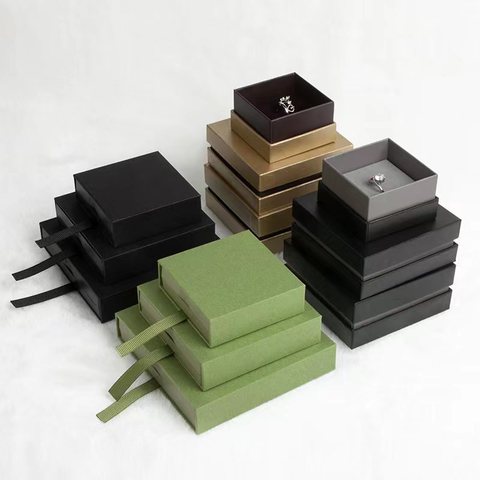 אריזה אישית לוגו נייר שחור קרטון מגירת קופסאות שרשרת תכשיטים מגירת הזזה תיבת שקופיות